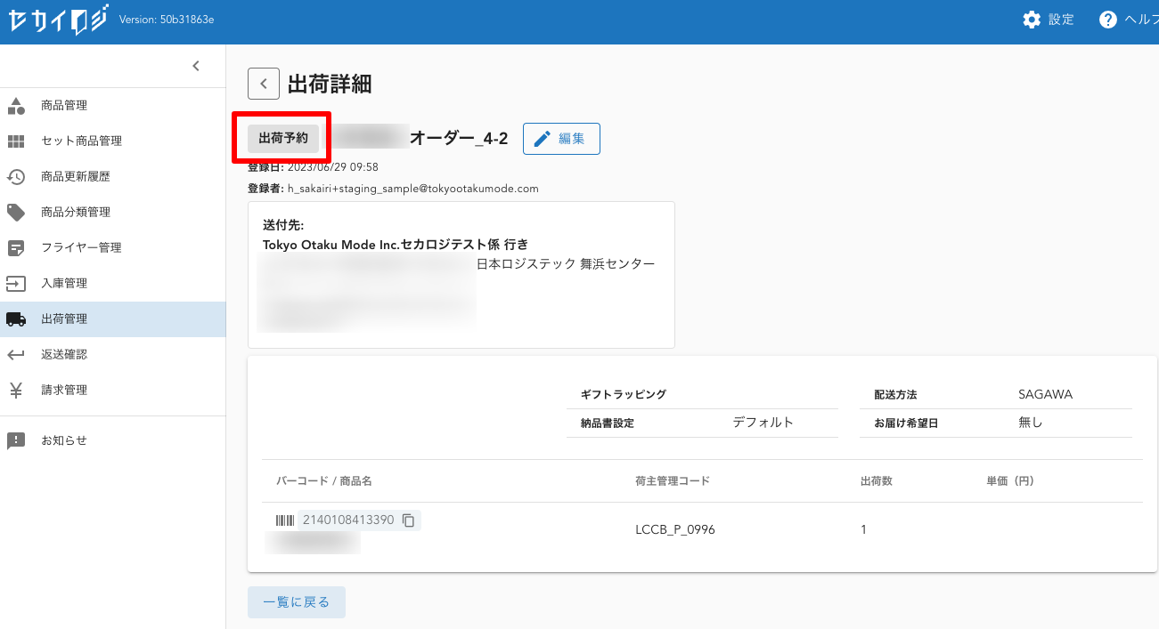 - あくまで出荷依頼の予約のため、作成時点では依頼を承認いただけません。(当然ながら出荷作業を進行することもできません。)