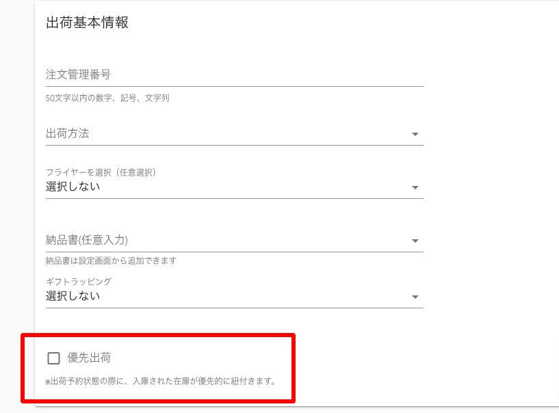 優先出荷機能