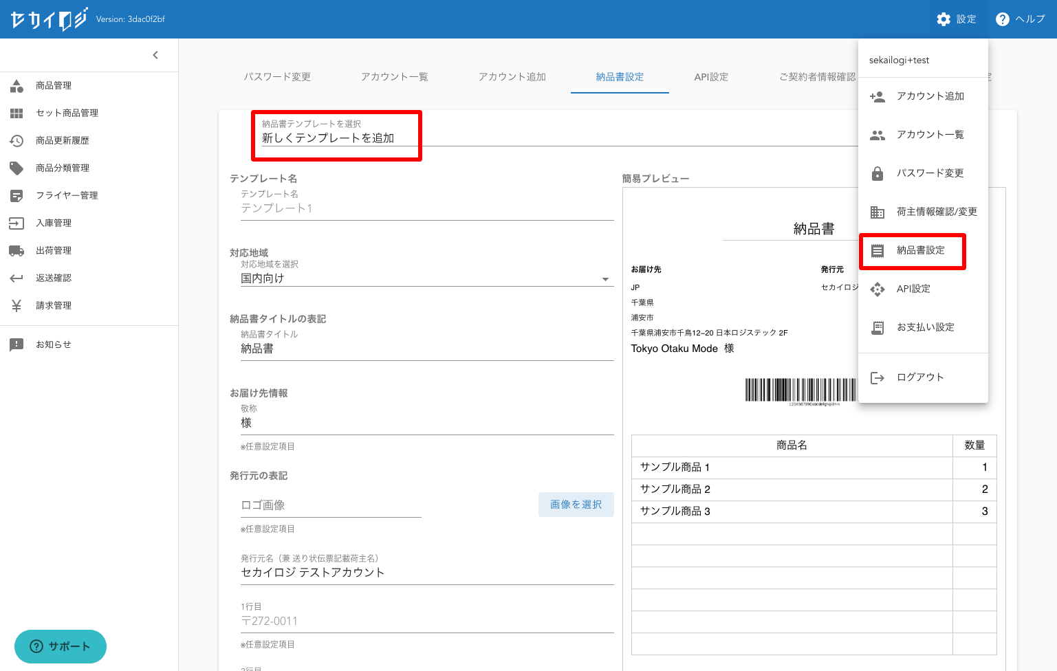 「納品書カスタム機能」はセカイロジ指定の納品書を荷主様ごとに独自にカスタムできる機能です。