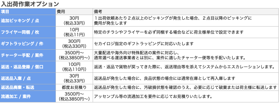 フライヤー扱いの商品は入庫検品や在庫管理を行いませんので、その分入庫費が発生せず、1個口出荷あたり10円と低コストでの運用が可能です。