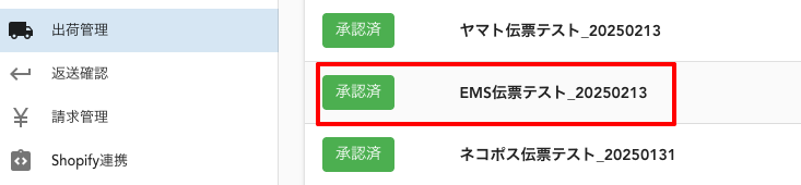出荷詳細ページは出荷一覧の各オーダーの注文管理番号をクリックすることで表示されます。